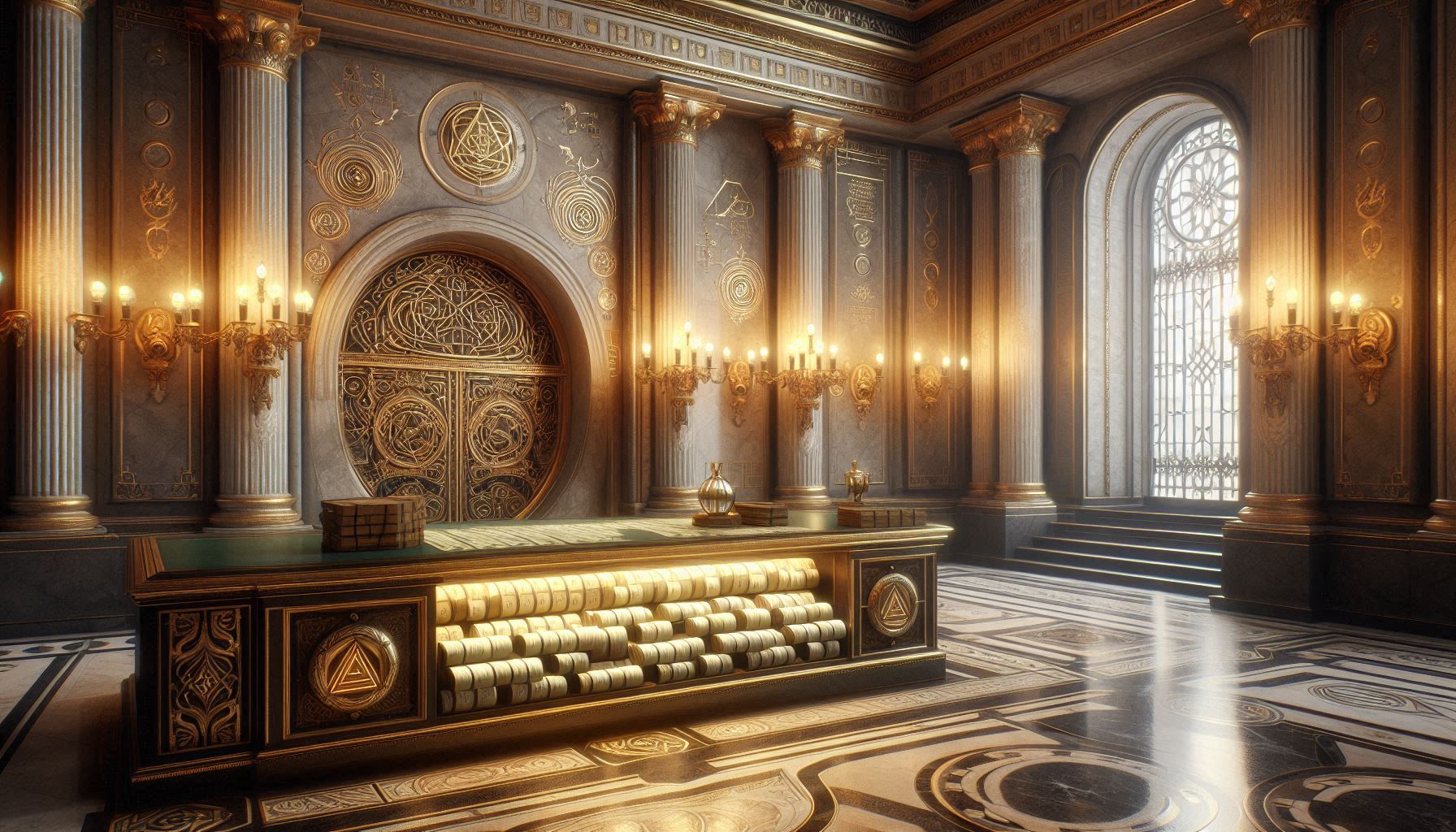 Seen as the centre of a new innovation called ‘banking’, merchants can now store their money or send it to other ‘accounts’. At the Bank, everything is kept safe in vaults, only accessible by the account owner, or highly ranked bank officials. Adnap proposes to go there first to withdraw some money from his account.